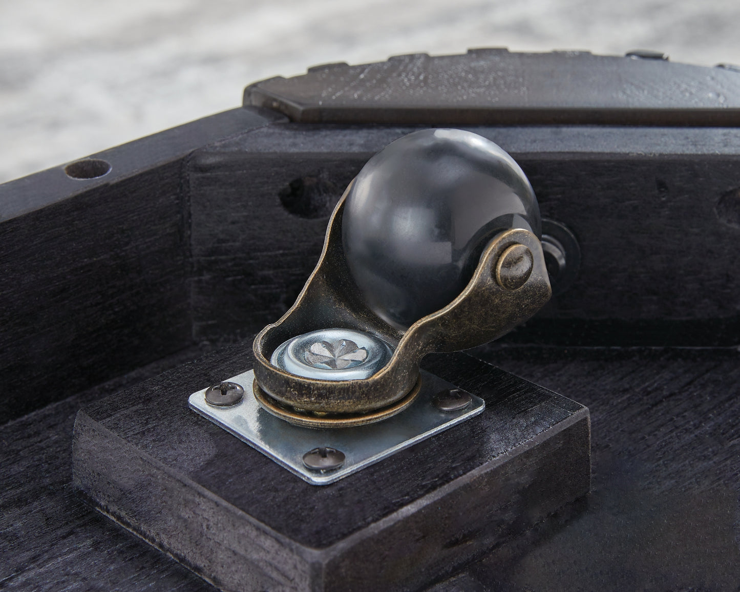 Details | Made with hardwood solids, poplar veneer and MDF substrates, Warm brown finish, Open lower shelf, Lift-top design, Casters for easy mobility, Assembly required | |