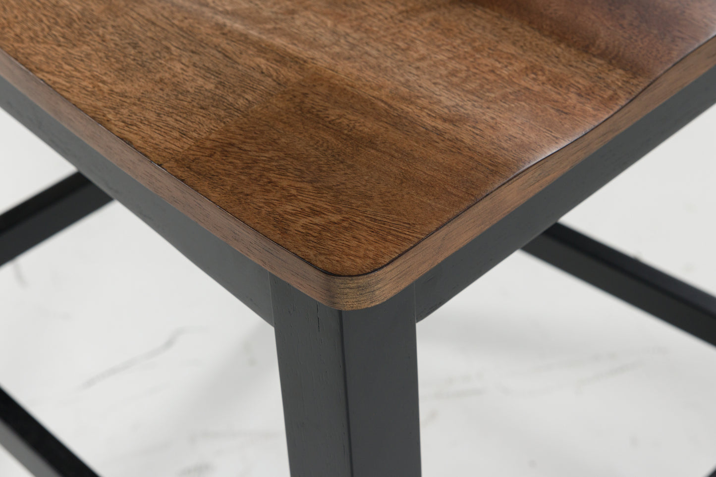 Details | D634-124: Made with solid wood frame, Seat with butcher block veneer pattern in deep brown wood tone finish, Frame with warm satin black finish, Contoured seat, Adjustable levelers, Assembly required, D634-13: Made with hardwood solids, mango wood veneer and MDF substrate, Tabletop with butcher block veneer pattern in deep brown wood tone finish, Frame with warm satin black finish, Storage pedestal with a double door on each side, Seats up to 6, Assembly required, | |