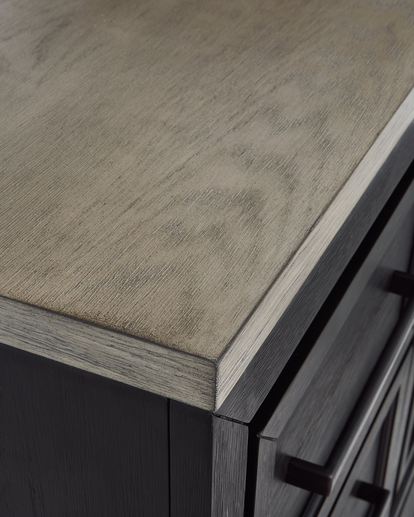 Details | B989B2: Includes queen panel headboard, storage footboard, and rails with roll slats, Made with hardwood solids, select oak veneers and engineered wood, Two-tone finish (brushed black and dusty grayish brown wood tone), Headboard with picture frame moulding, Footboard with two deep drawers, Smooth-gliding soft-close drawers with fully finished interiors and dovetail construction, Sleek drawer pulls with black finish, Bed does not require additional foundation/box spring; accommodates most zero clearance adjustable bases with the addition of a bunkie board, Mattress available, sold separately, Assembly required, B989B1: Includes dresser and mirror, Made with hardwood solids, select oak veneers and engineered wood, Two-tone finish (brushed black and dusty grayish brown wood tone), Sleek drawer pulls with black finish, 11 soft-close, smooth-gliding drawers with fully finished interiors and dovetail construction (top drawers felt lined), 5 drawers with brushed black finish; 6 drawers with grayish brown wood tone, 3 drawers located behind each door, Mirror mounts to back of dresser, Assembly required, B989-48: Made with hardwood solids, select oak veneers and engineered wood, Two-tone finish (brushed black and dusty grayish brown wood tone), Sleek drawer pulls with black finish, 5 soft-close, smooth-gliding drawers with fully finished interiors and dovetail construction (top drawers felt lined), 3 pull-out trays (felt lined) and 2 adjustable shelves behind door, | |