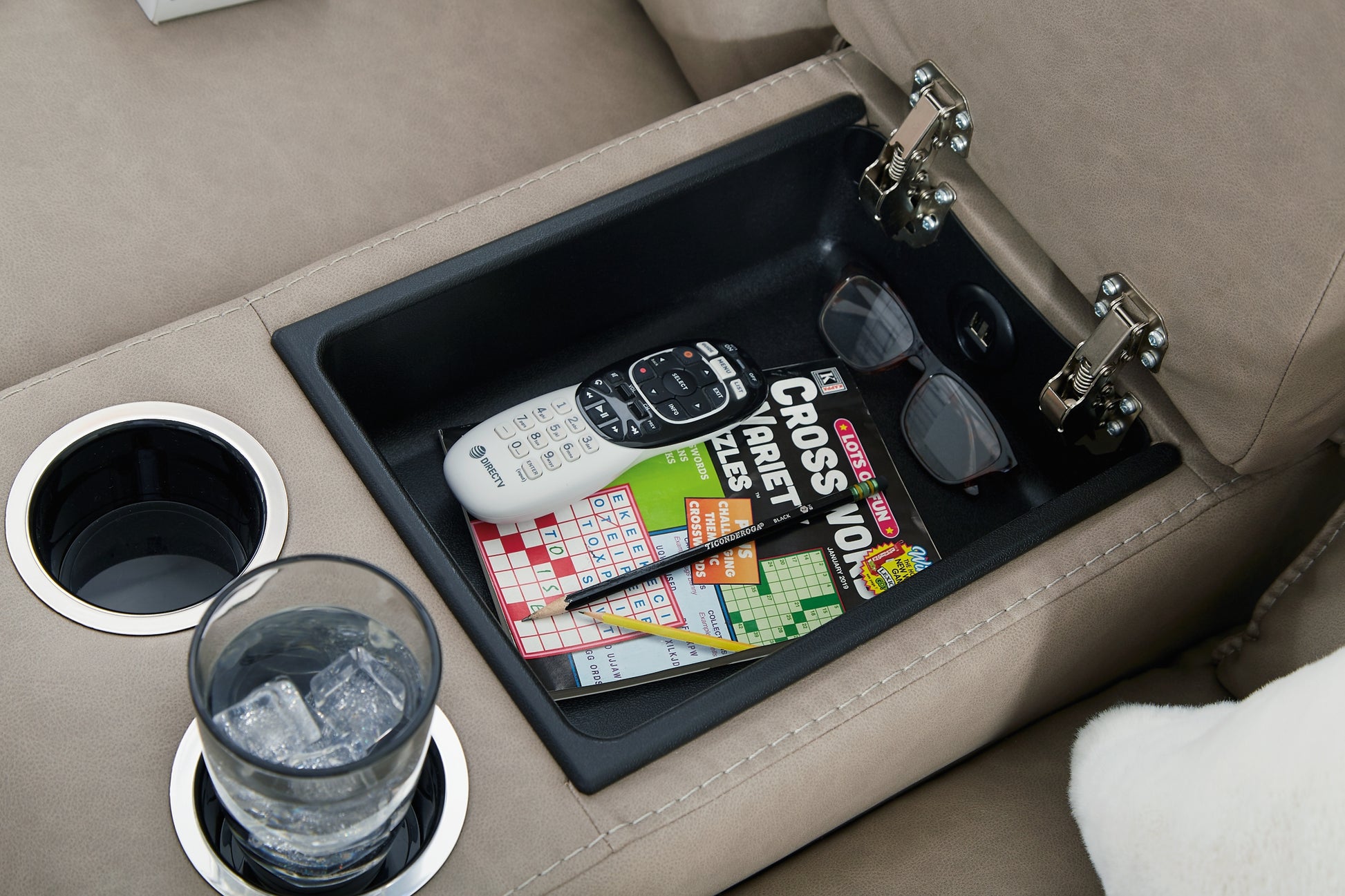 Details | 6330789: Dual-sided recliner; middle seat remains stationary, Pull tab reclining motion, Corner-blocked frame with metal reinforced seat, Attached back and seat cushions, High-quality foam cushions wrapped in poly fiber, Faux leather upholstery, Drop-down table with 2 cup holders and 2 USB charging ports, Armrests with cup holders, Power cord included; UL Listed, 6330794: Pull tab reclining motion, Corner-blocked frame with metal reinforced seat, Attached back and seat cushions, High-quality foam cushions wrapped in poly fiber, Faux leather upholstery, Center console with 2 cup holders, Armrests with cup holders, 6330725: Pull tab reclining motion, Gentle rocking motion, Corner-blocked frame with metal reinforced seat, Attached back and seat cushions, High-quality foam cushions wrapped in poly fiber, Faux leather upholstery, Armrests with cup holders, | |